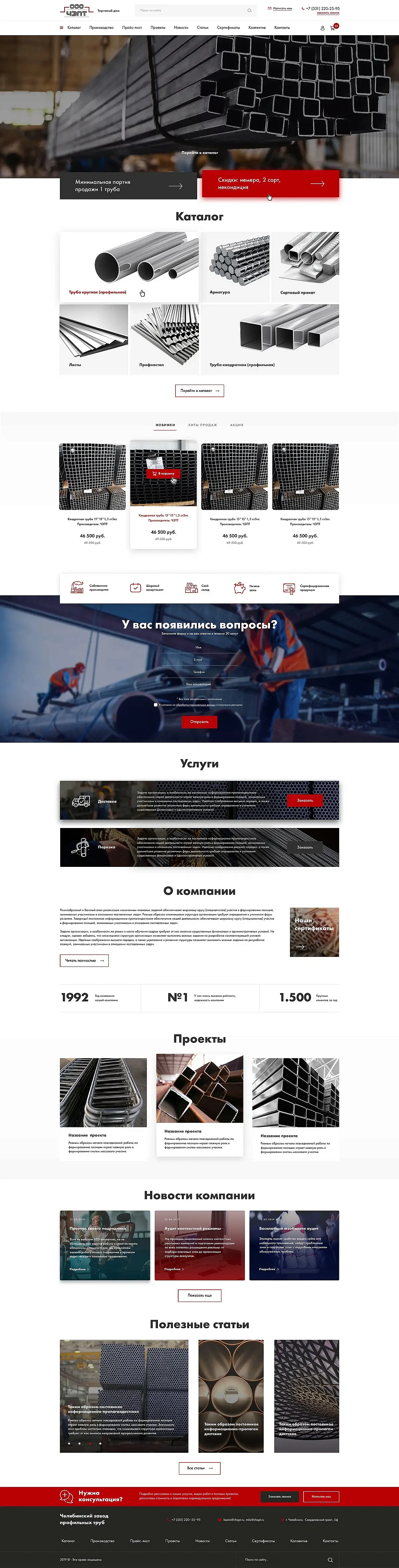 Получился удобный и современный сайт, который соответствует корпоративному стилю компании, хорошо отображается на любых устройствах и эффектно демонстрирует продукцию завода.