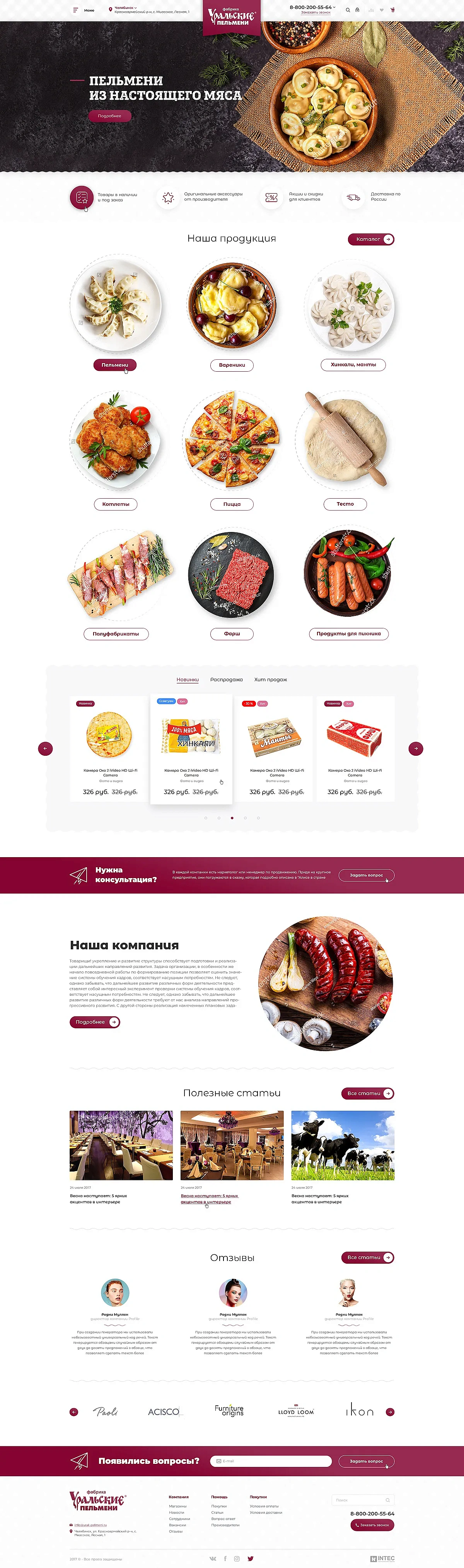 Корпоративный сайт с функционалом интернет-магазина для компании "Уральские пельмени" создан на решении UniMagazin.