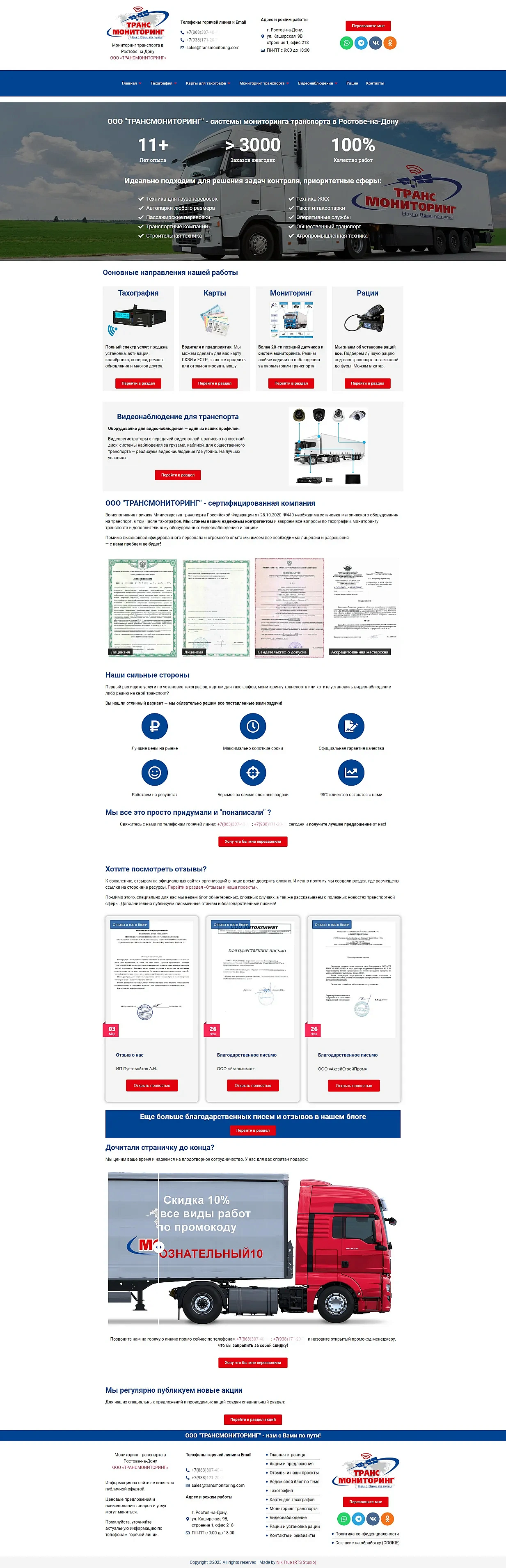 Разработка сайта для компании по внедрению спутниковых систем мониторинга «Транс Мониторинг»‎