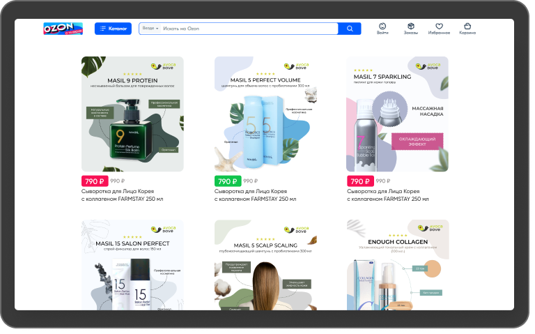 Подготовим несколько вариантов и примеров качественного визуала. Адаптируем контент к требованиям площадок и смонтируем продающее видео. Внедрим актуальные тренды и решения графического дизайна.