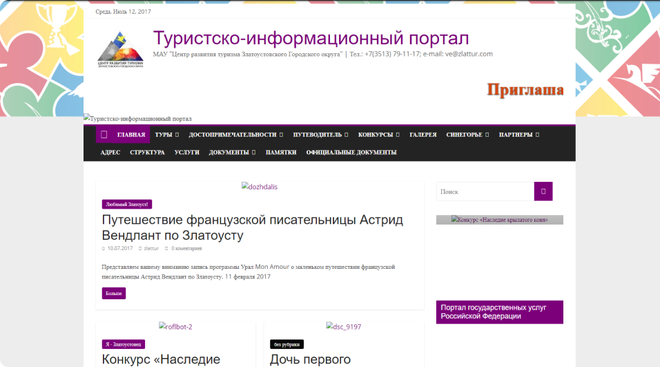 Корпоративный сайт некоммерческой организации туристско-информационного портала Златоустовского городского округа.