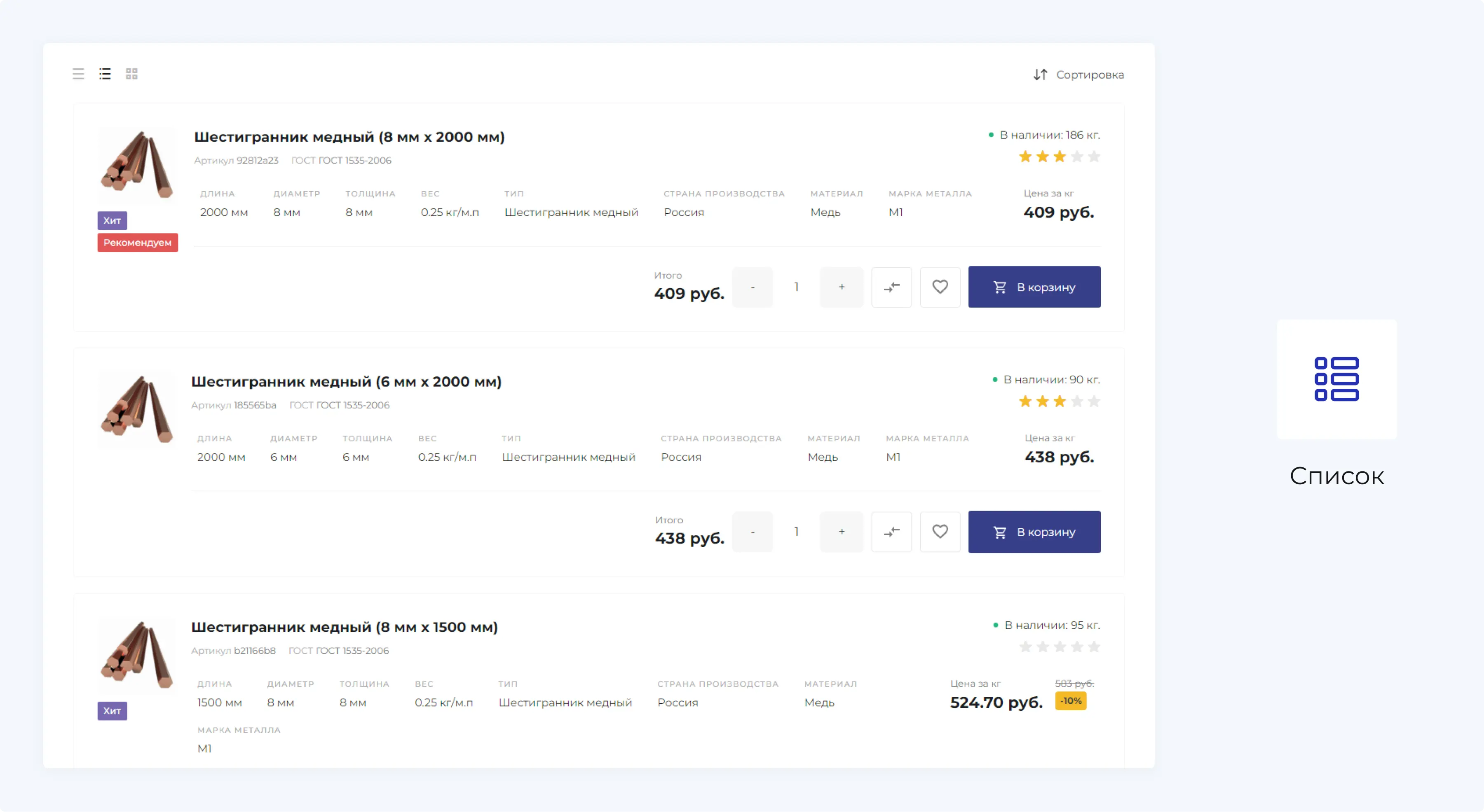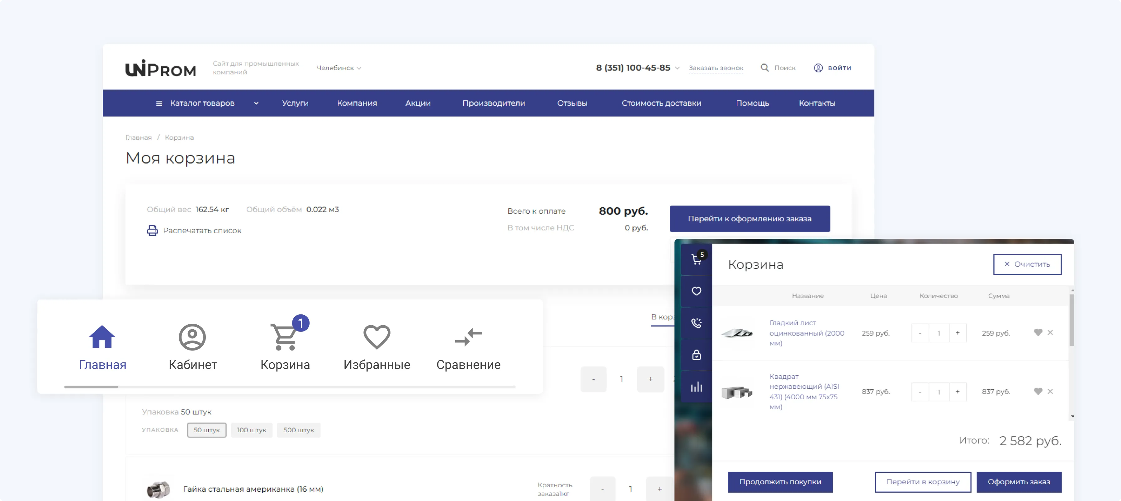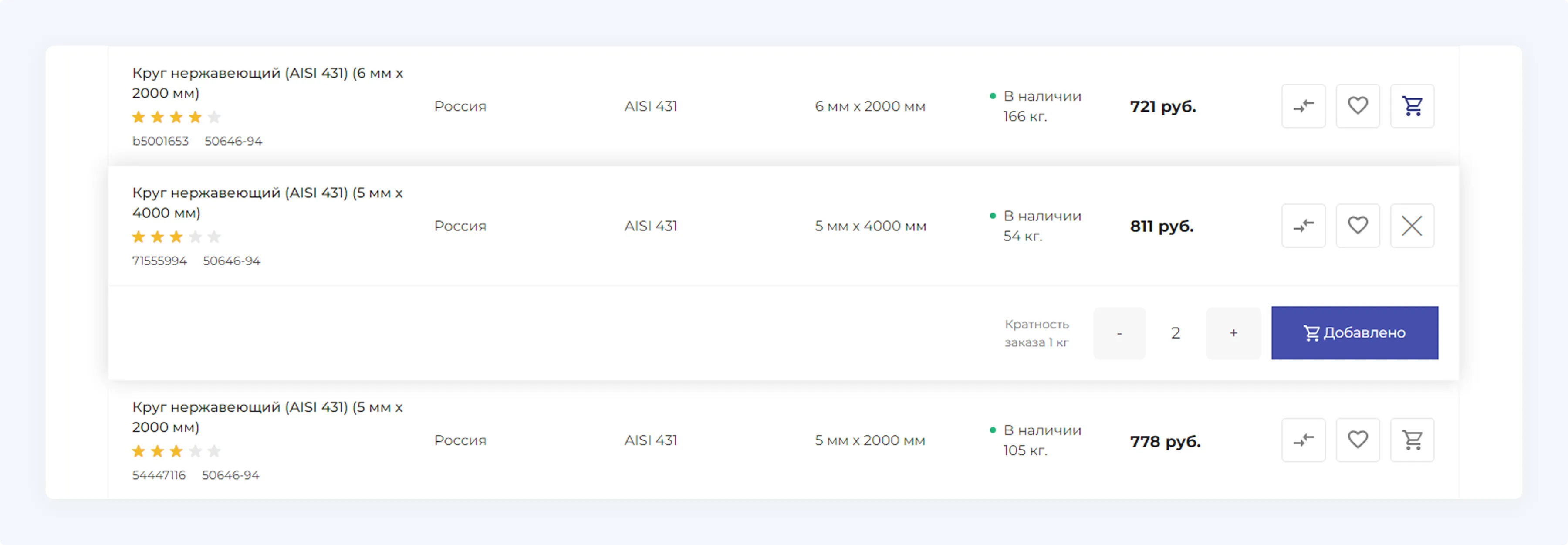 Покупателю удобно просматривать добавленные позиции и при необходимости изменять количество товаров