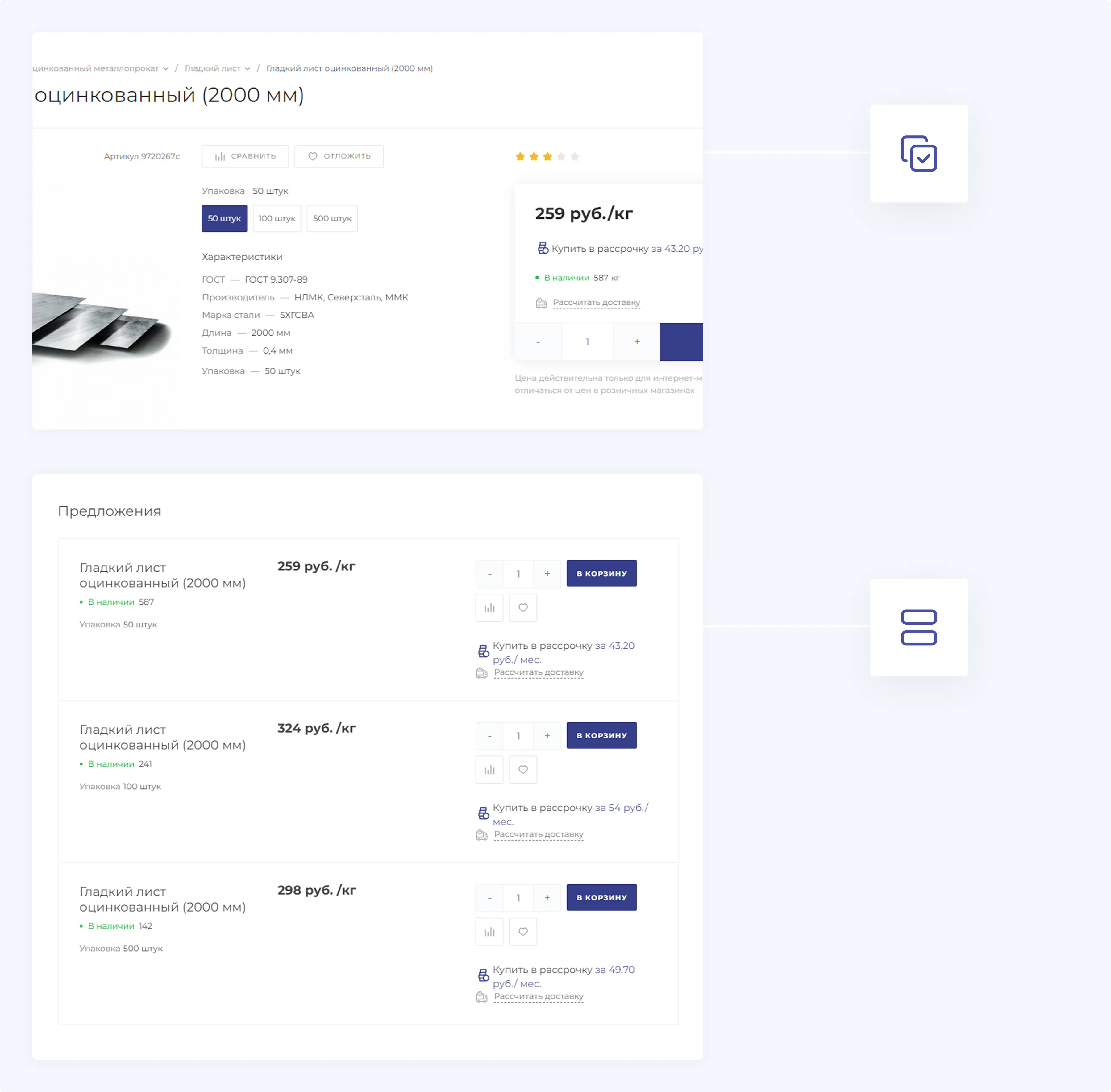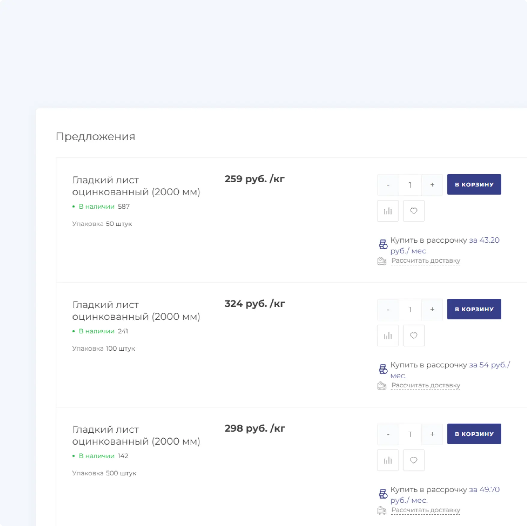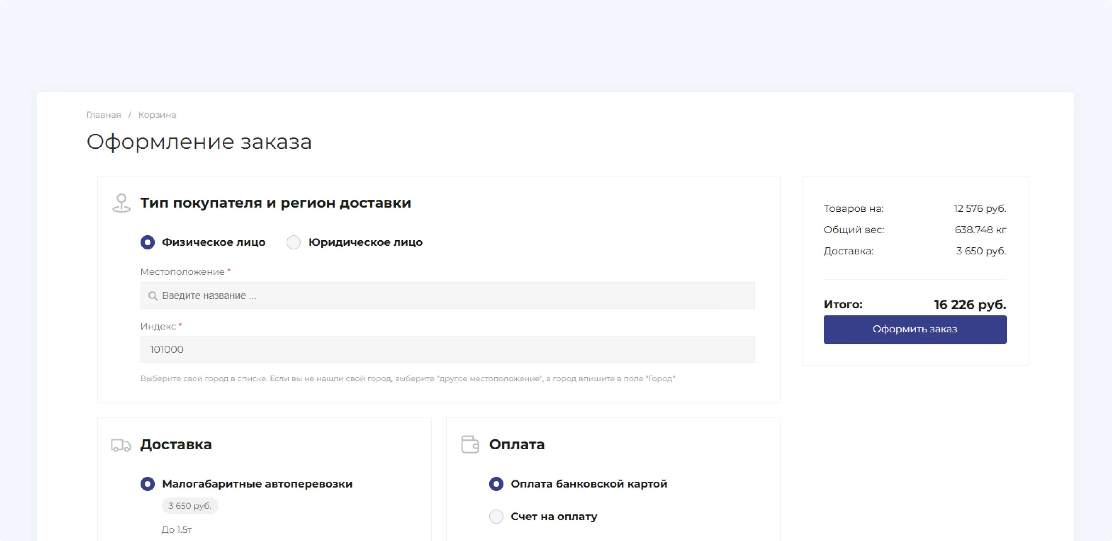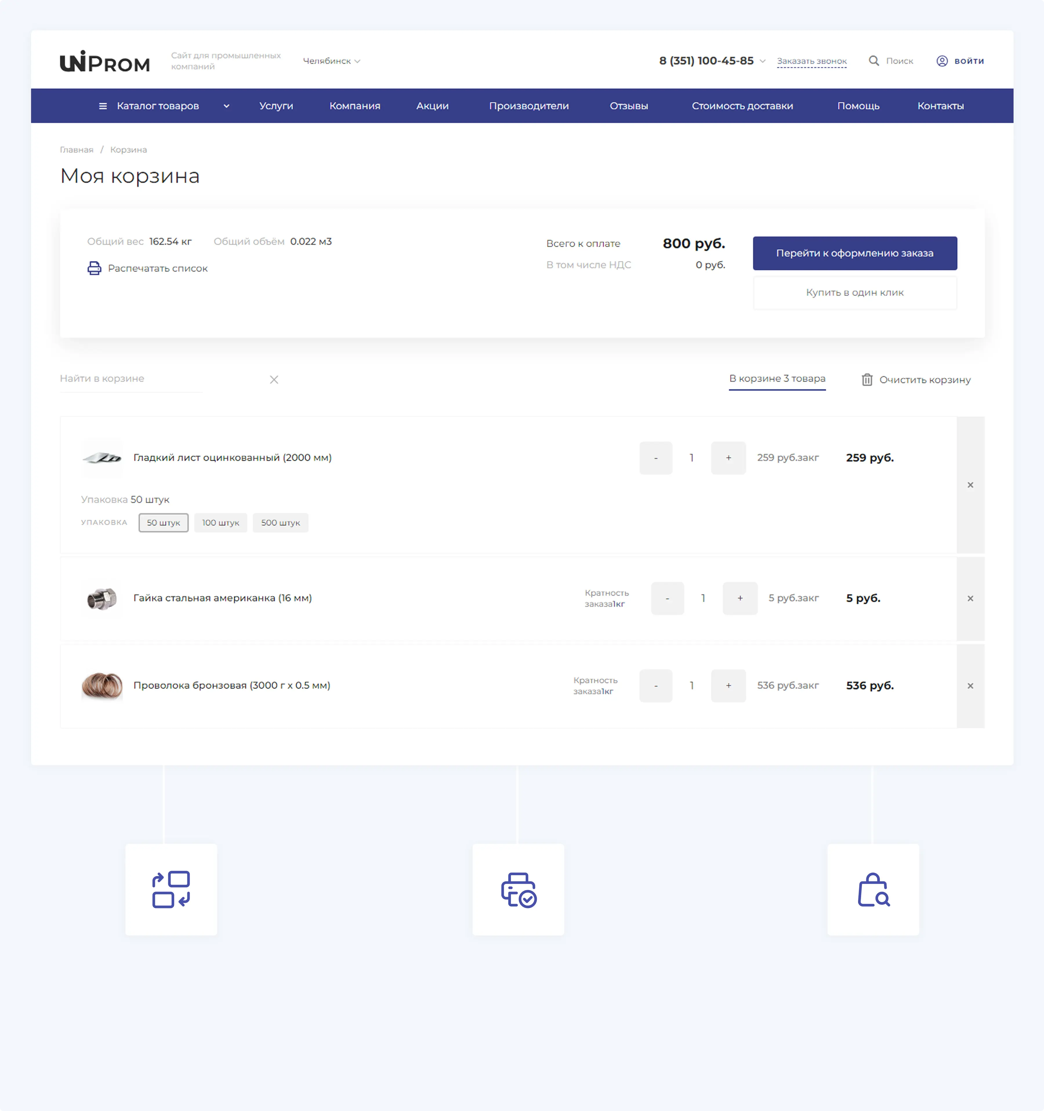 Покупателю удобно просматривать добавленные позиции и при необходимости изменять количество товаров