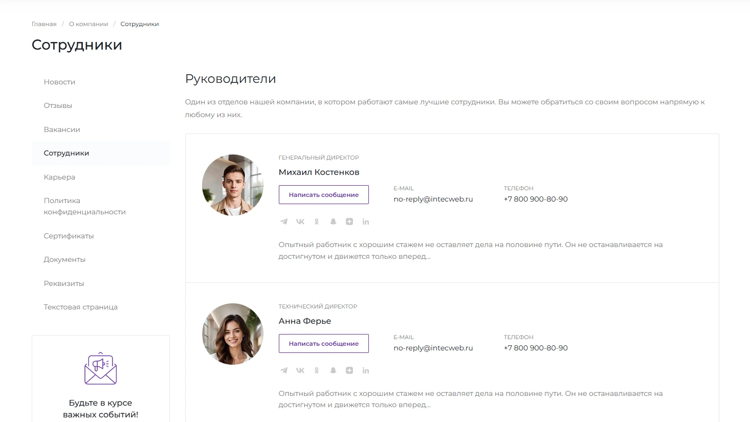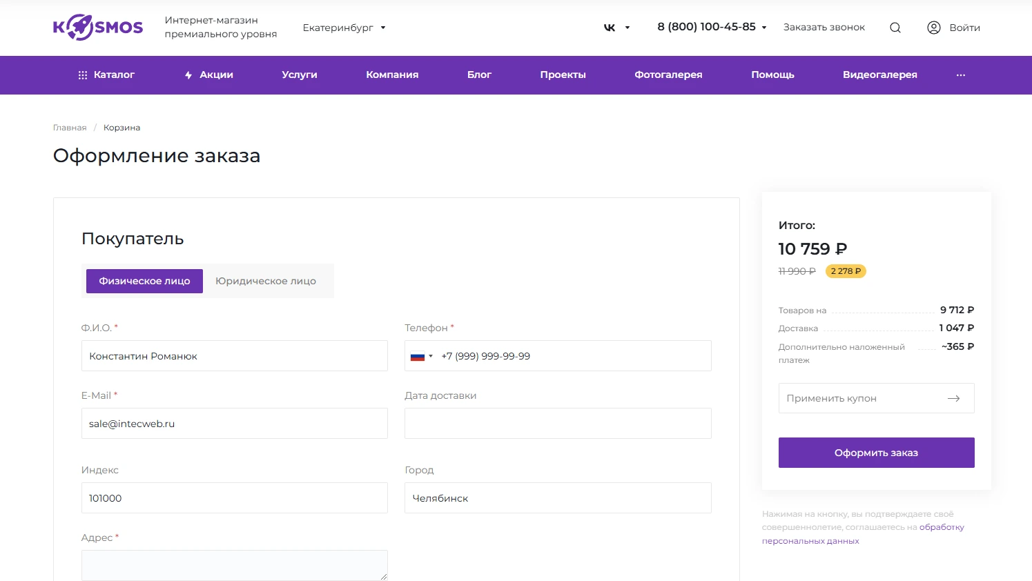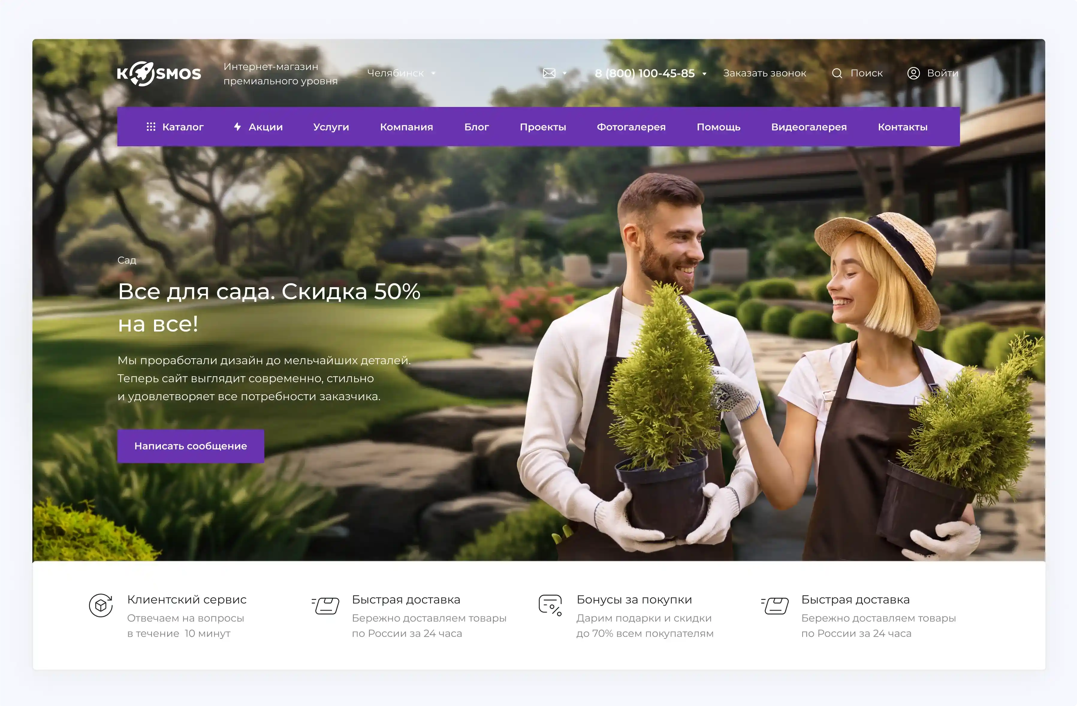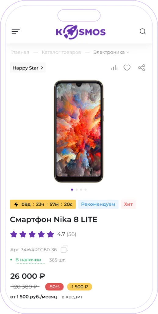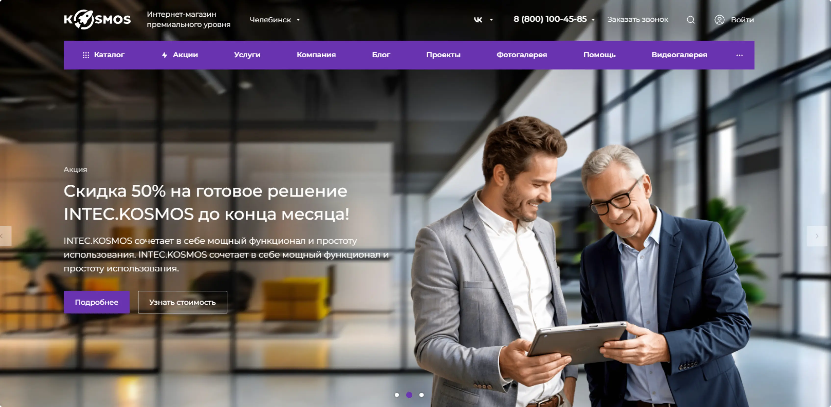 Сайты, созданные на платформе Intec.Kosmos, имеют такой же уровень качества, как и индивидуально разработанные проекты — пользователи не увидят отличий.