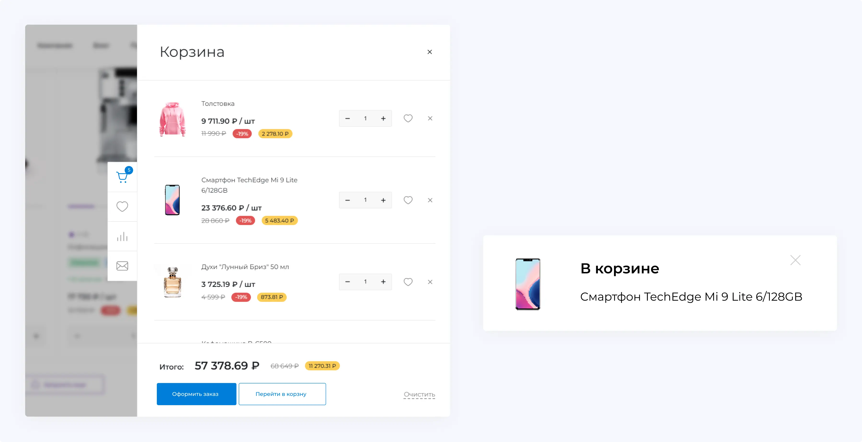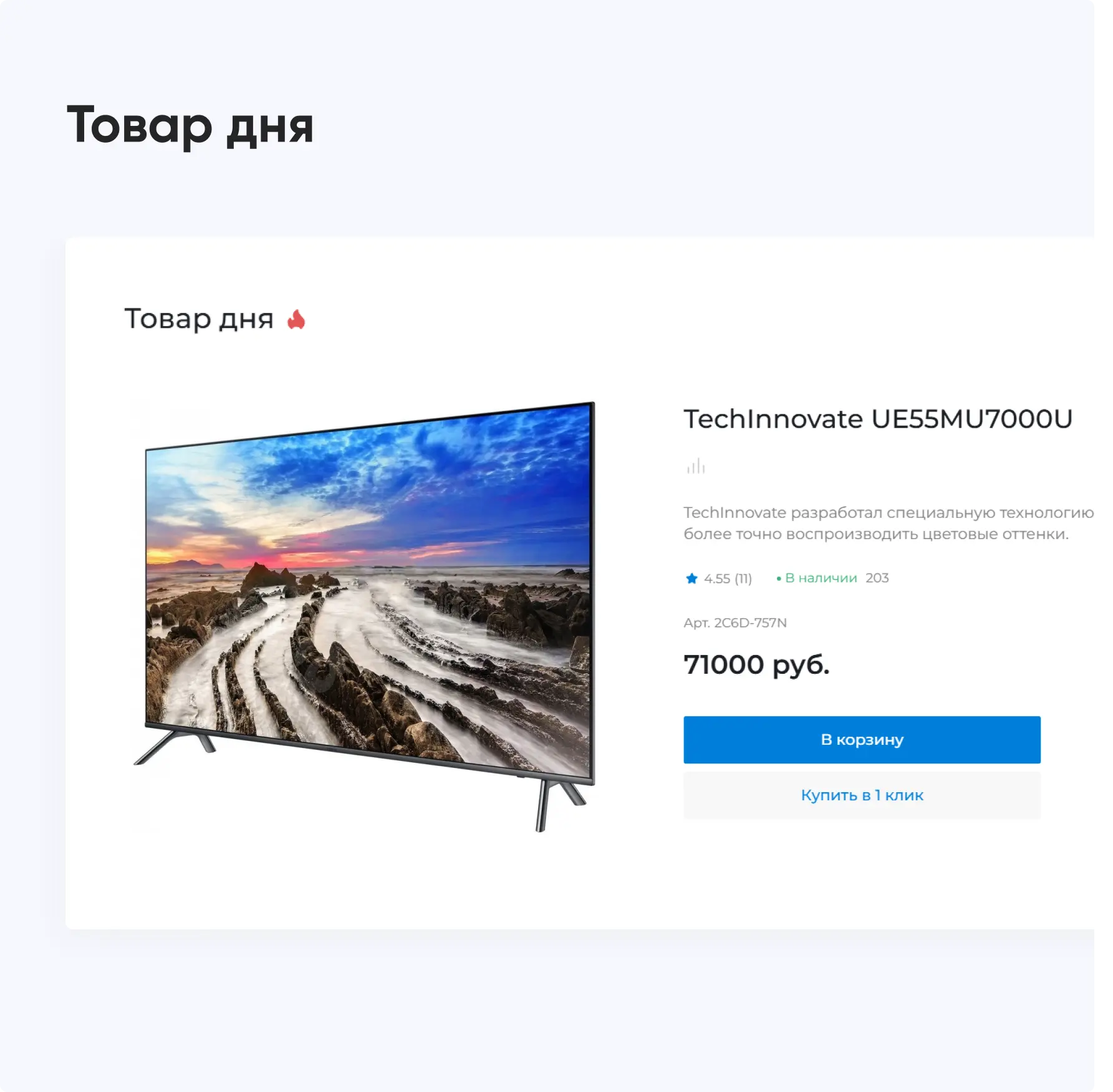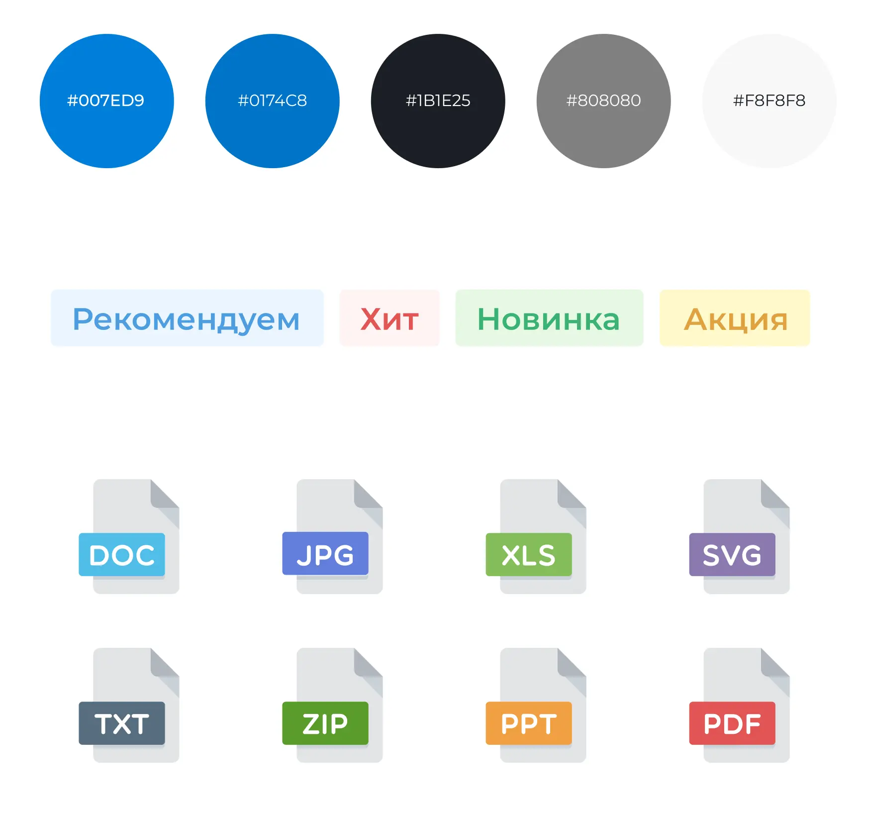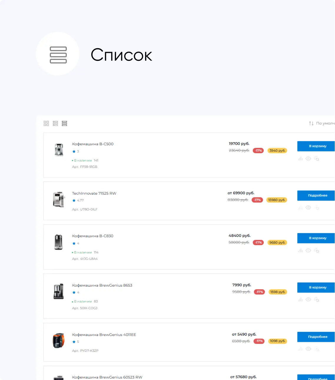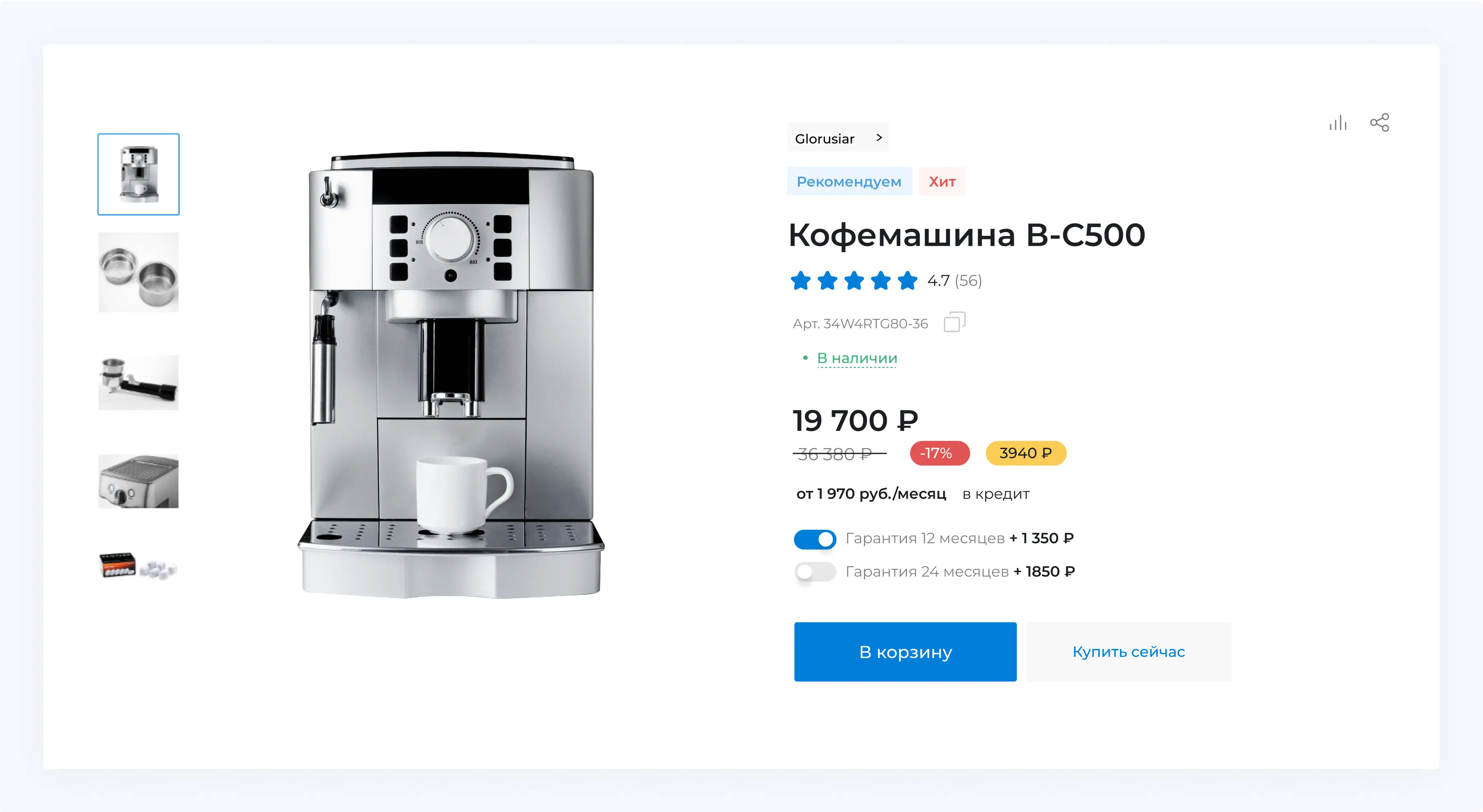 Набор маркетинговых инструментов для привлечения интереса покупателя — стикеры «Хит», «Акция», «Рекомендуем», таймер окончания акции, размер скидки и многое другое.