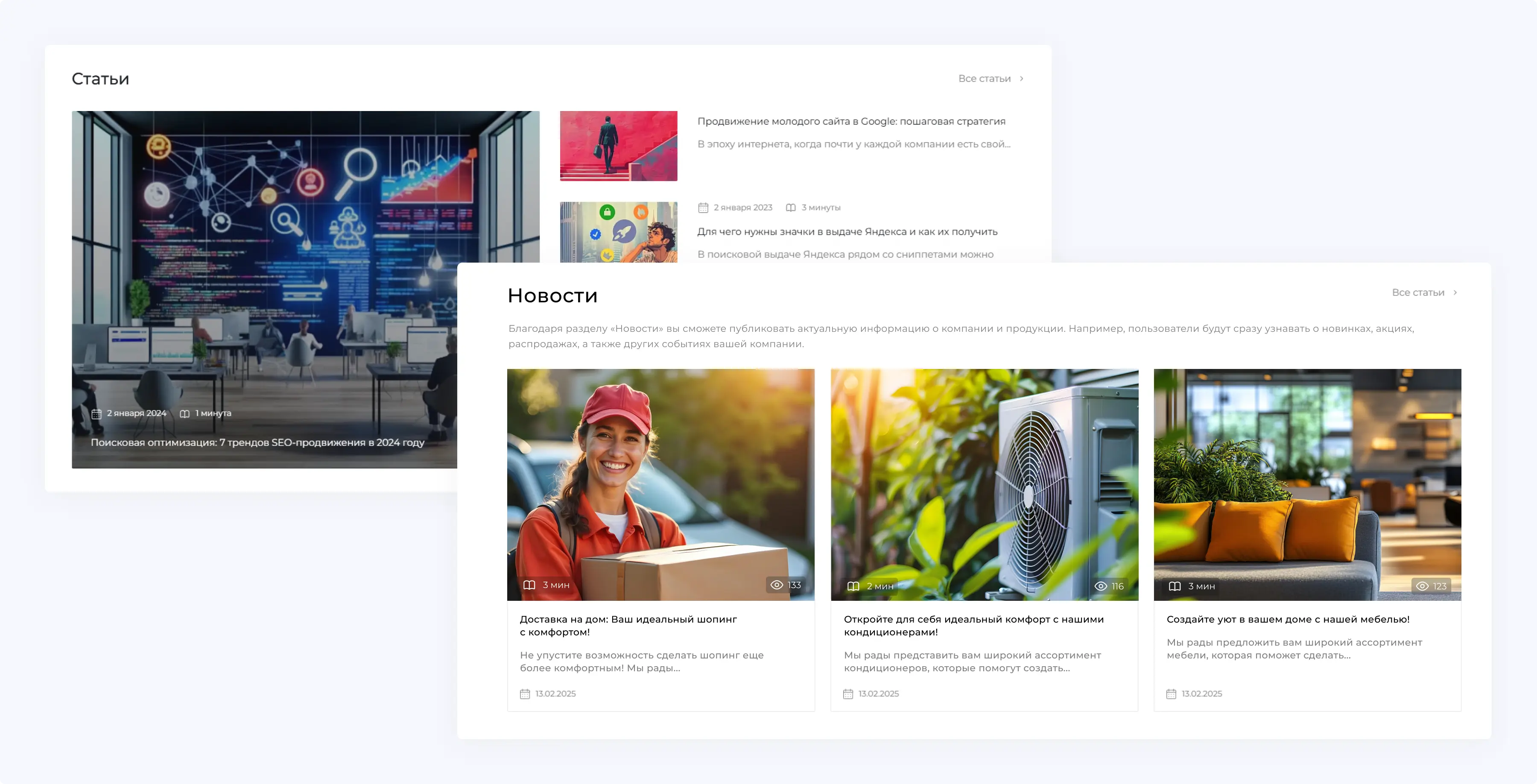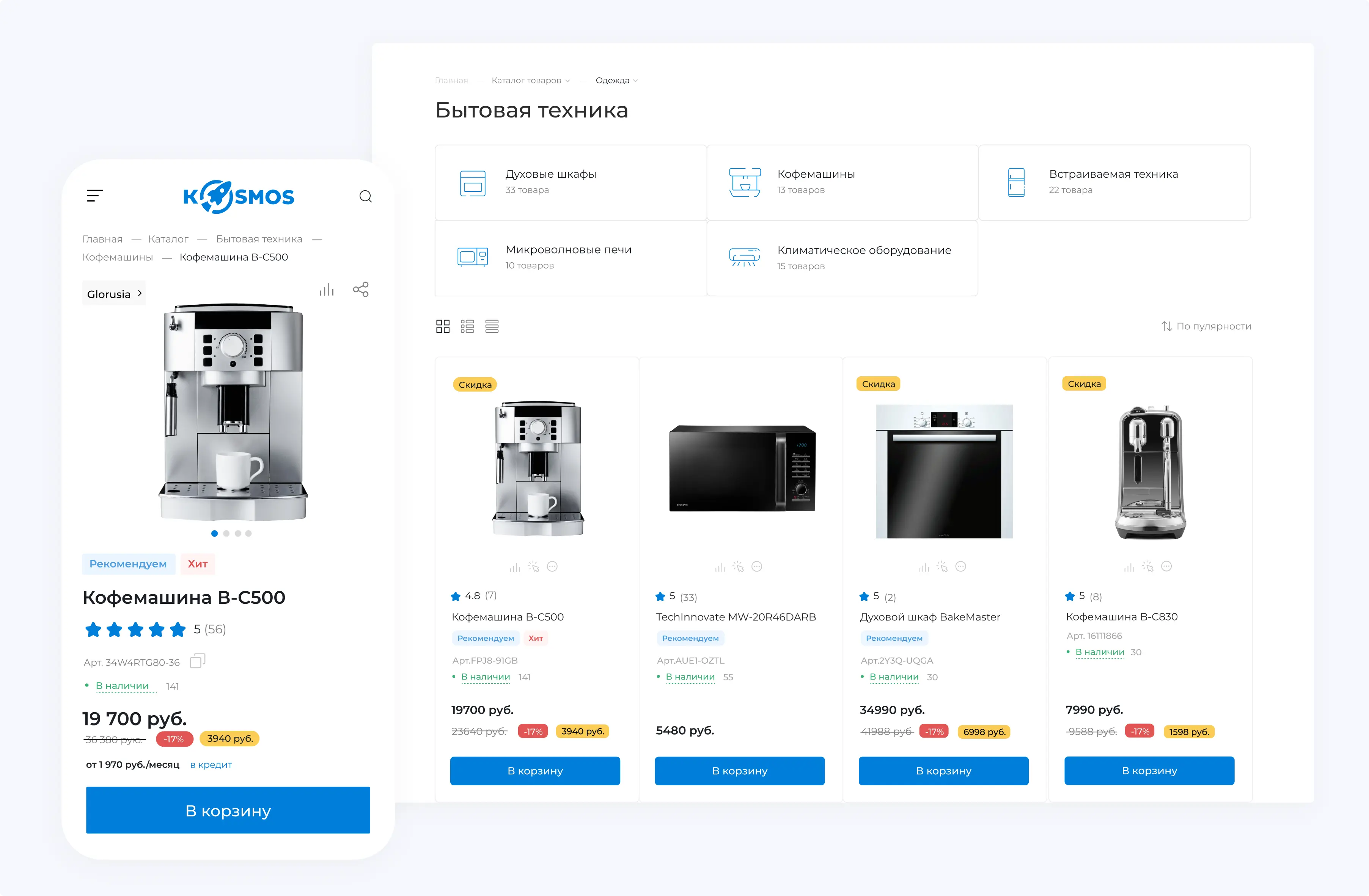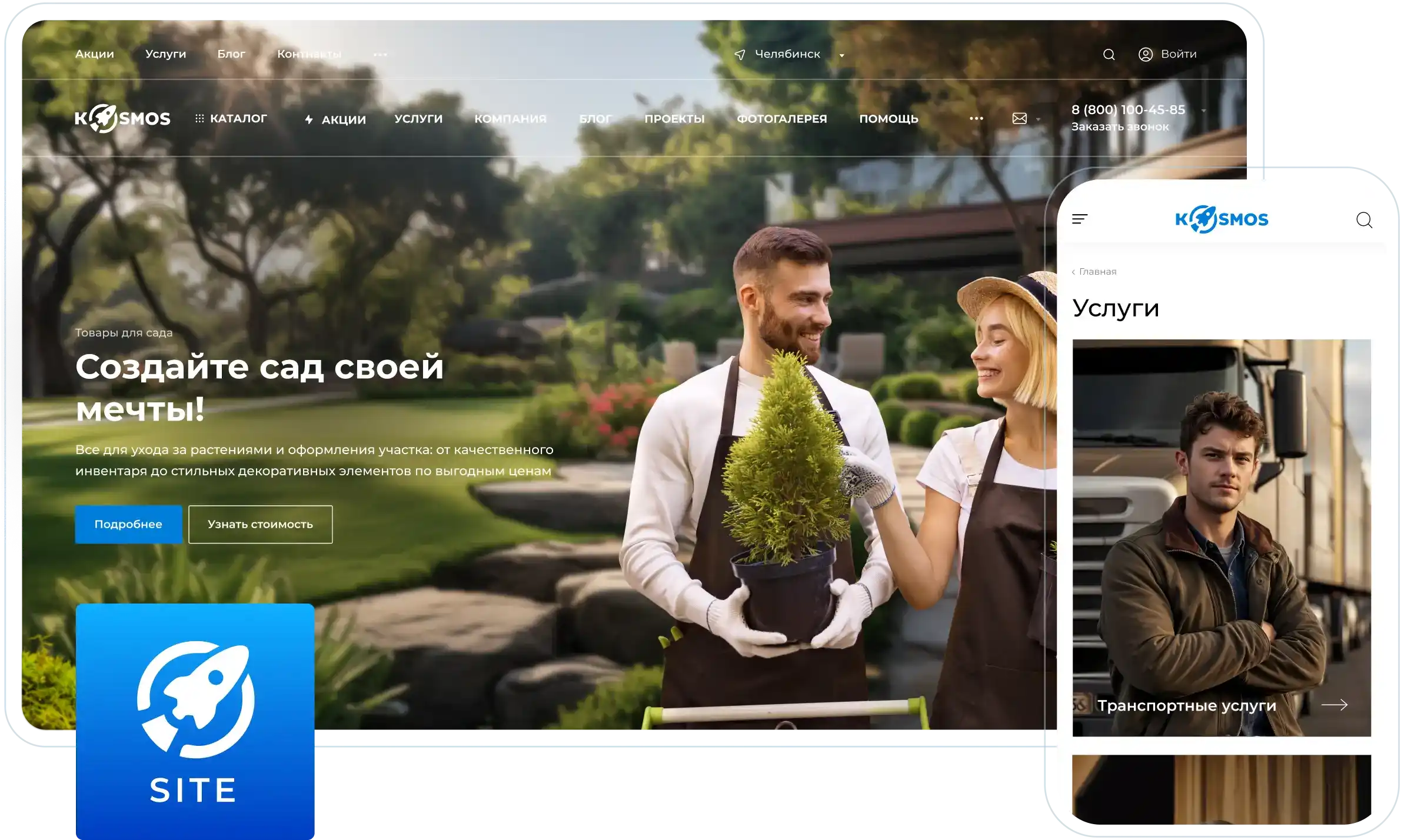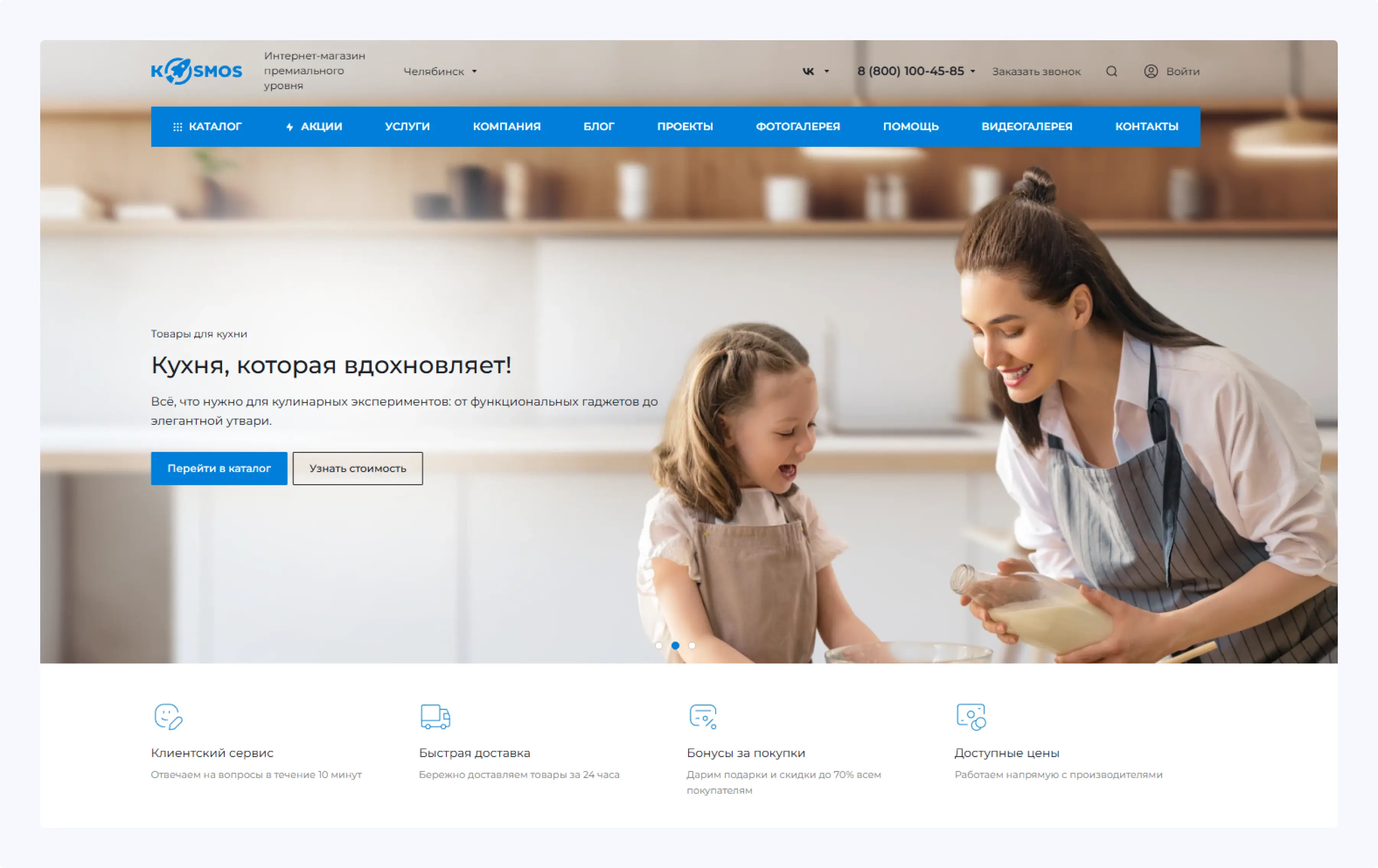Сайты, созданные на платформе Intec.Kosmos, имеют такой же уровень качества, как и индивидуально разработанные проекты — пользователи не увидят отличий.