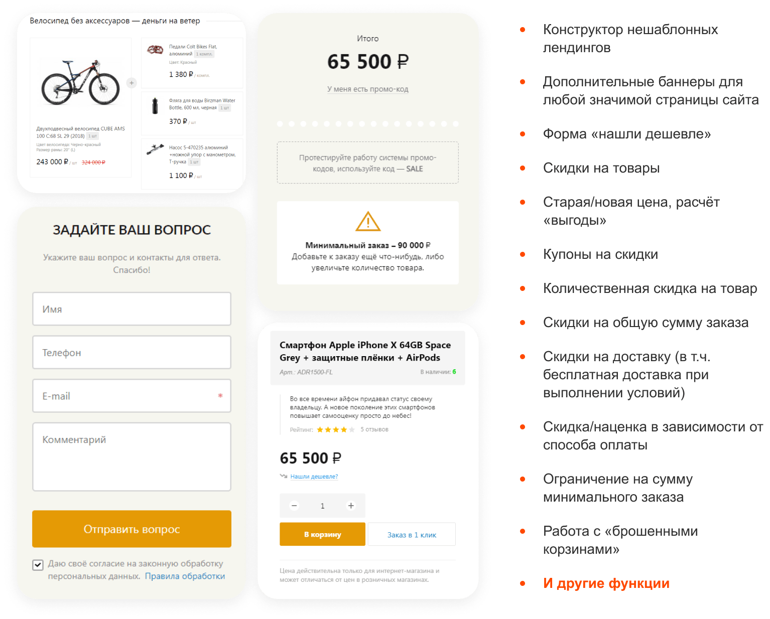 С помощью этих редакций можно создать интернет-магазин, но в этом случае вам понадобится модуль корзины, не входящий в комплектацию редакций. Такой модуль включен в состав некоторых готовых решений. Оптимальный вариант для разработки интернет-магазина - это редакции «Малый бизнес» и «Бизнес», поддерживающие интеграцию с 1С.