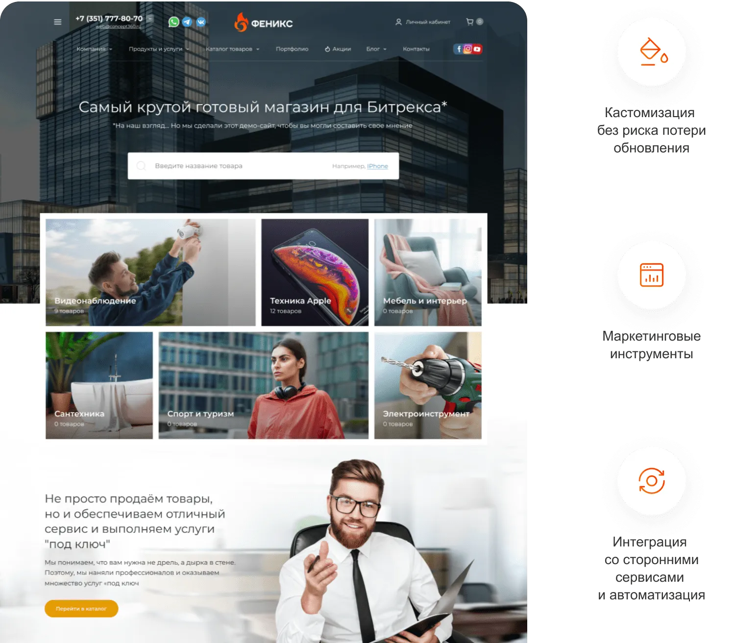 ФЕНИКС устанавливается отдельным сайтом с помощью стандартного установщика на активную лицензию 1С-Битрикс редакции "Малый Бизнес" и "Бизнес".