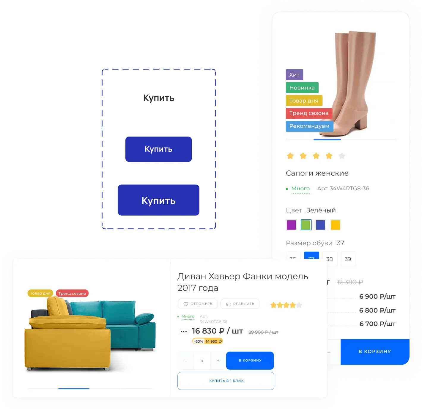 Не нужно думать о проектировании магазина, дизайне, контролировать верстку, отслеживать полноту выполнения программной части. Мы все это уже сделали за вас.